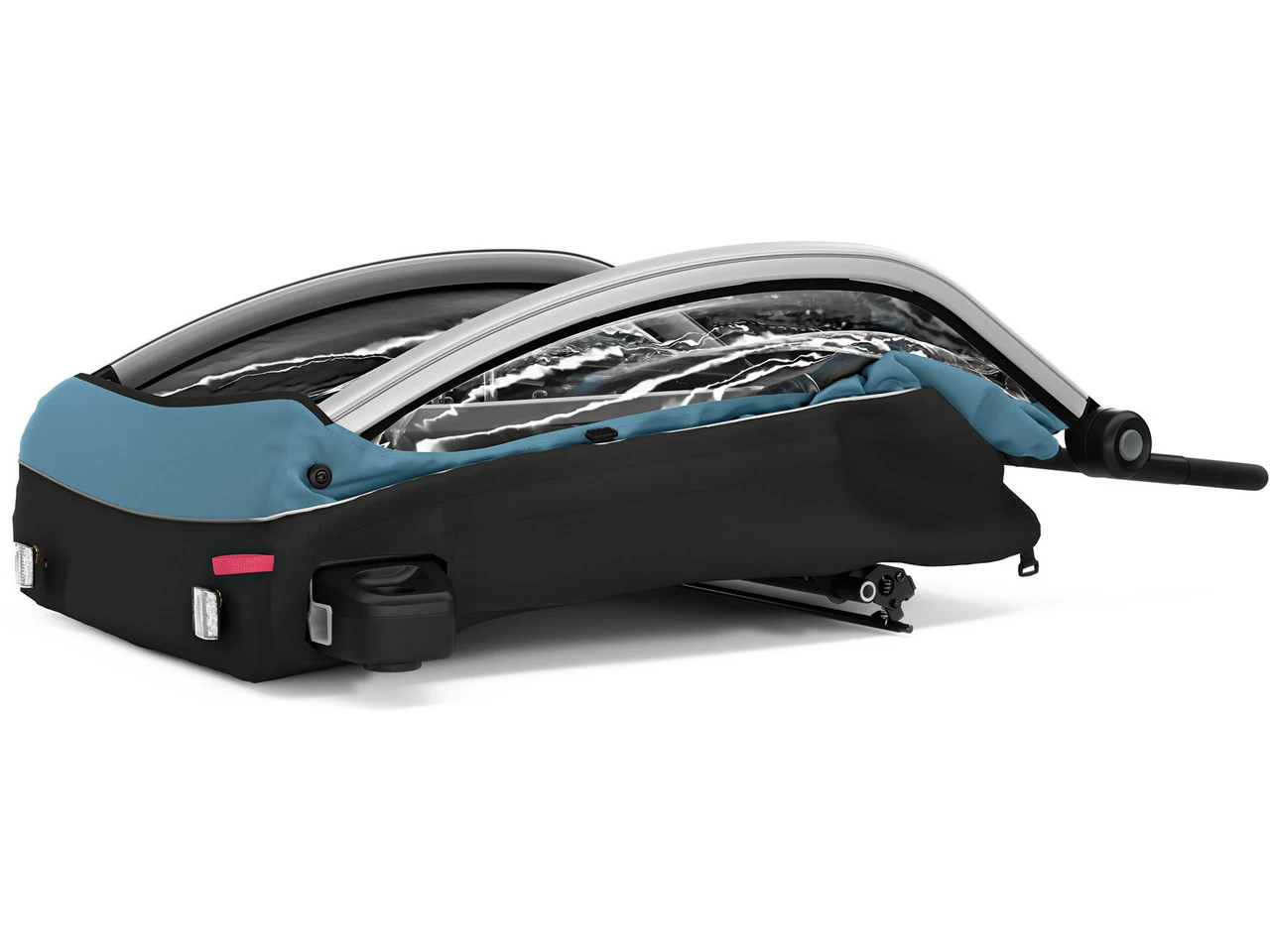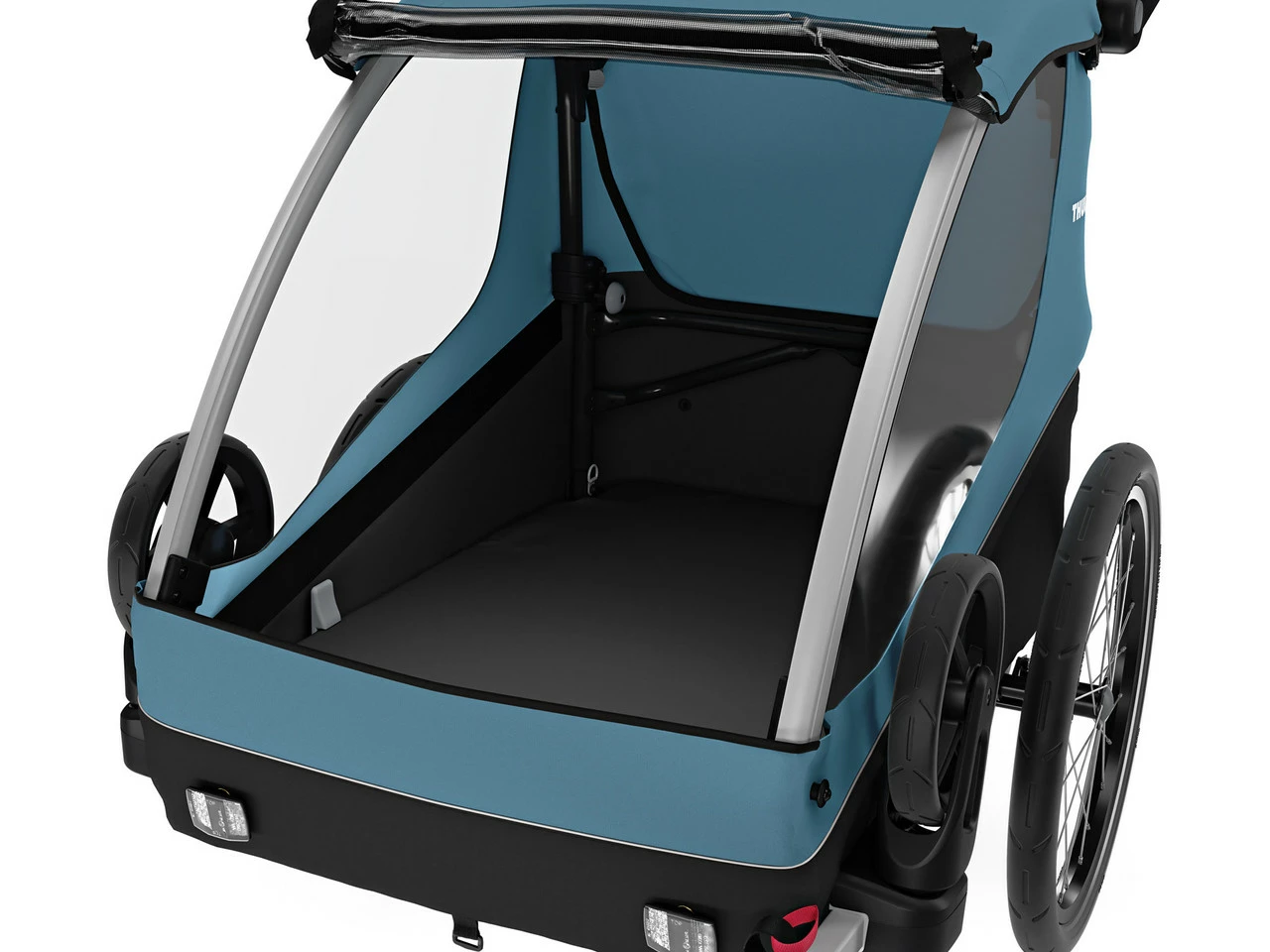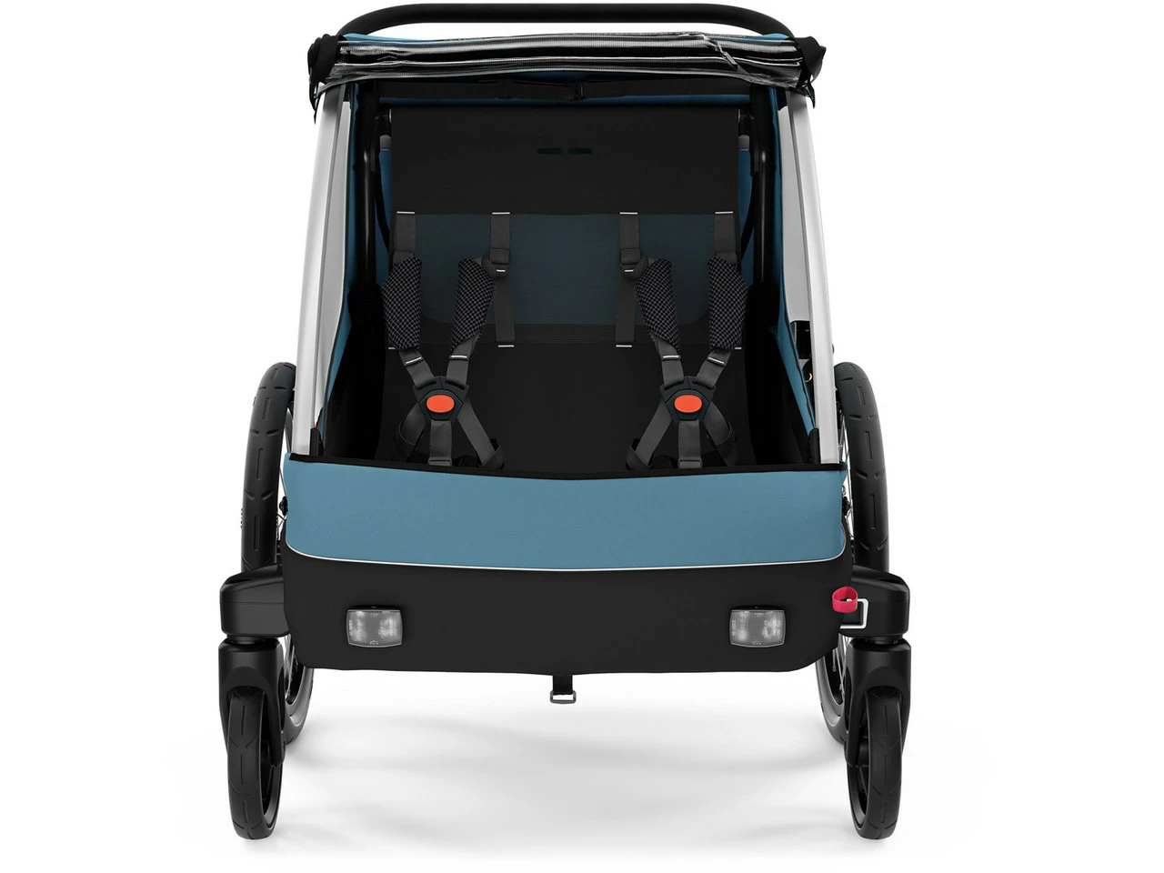 Spezifikationen:Ausführung:KinderanhängerLaufradgröße:20″Sitzplätze:2Technische Daten:Bremse:fußbetätigte FeststellbremseFederung:NeinDeichselbefestigung Zugrad:HinterradachseMaße zusammengeklappt (H x B x T):32 cm x 74 cm x 99 cmRahmenmaterial:AluminiumFreigaben:Zuladung max.:44 kgStützlast max.:8 kgFeatures:multifunktioneller Fahrradanhänger für bis zu zwei Passagiere, 44 kg Lasten oder Deinen Hundgeeignet für Kinder zwischen 6 Monaten und etwa 5 Jahrenverstellbarer ergonomischer Bügel und zwei verstaubare Vorderräder für Stabilität im Buggy-Modusim Cargo-Modus mit stabilem Boden und Befestigungspunkten als Transportanhänger nutzbarmit optionalem Thule Dog Trailer Kit auch als Hundeanhänger geeignet5-Punkt-Gurte mit HalspolsternRegenverdeck mit Insektennetzintegrierter Stauraum hinter dem Kindersitz für bis zu 4 kg Ladungkompakt zusammenklappbarReflexionsstreifen auf den ReifenSicherheitsfahne für bessere Sichtbarkeit im Straßenverkehrbatteriebetriebenes Rücklicht (AAA) zum Anstecken an den Anhänger