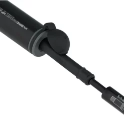Die HybridRocket HP Mini von Topeak ist eine Minipumpe, die sich besonders für schnelles Aufpumpen von Rennradreifen eignet. Dabei sind gleich zwei Pumpen in ihr vereint: auf der einen Seite findest Du einen CO2-Inflator. Dort wird eine CO2-Kartusche aufgeschraubt, der Pumpkopf auf das Ventil aufgesetzt und die Pumpe gegen das Ventil gedrückt, sodass schnell viel Luft in den Reifen strömt. Am anderen Ende der Pumpe befindet sich ein herausziehbarer Kurzschlauch mit Pumpkopf für das Pumpen per Hand mit bis zu 11 bar Druck.