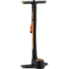MTB-Standpumpe mit einem Oversize-Stahlzylinder, der großvolumige MTB-Reifen im Vergleich zu einer herkömmlichen Standpumpe bis zu 50 % schneller aufpumpt.