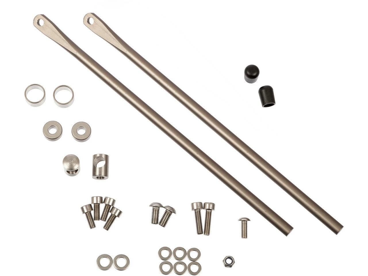Lieferumfang:2 x Befestigungsstreben (240x8mm)2 x Abdeckkappen2 x Strebenhalter2 x Distanzscheiben (14x6mm)2 x Innensechskantschraube (M5x18mm)4 x Innensechskantschraube (M5x12mm)1 x Innensechskantschraube (M5x12mm)2 x Innensechskantschraube (M6x12mm)2 x Unterlegscheibe (6x12mm)6 x Unterlegscheibe (5,3x10mm)1 x Stopmutter (M5)1 x Winkel2 x Hutmutter (M5x12mm)ohne Lampenhalter