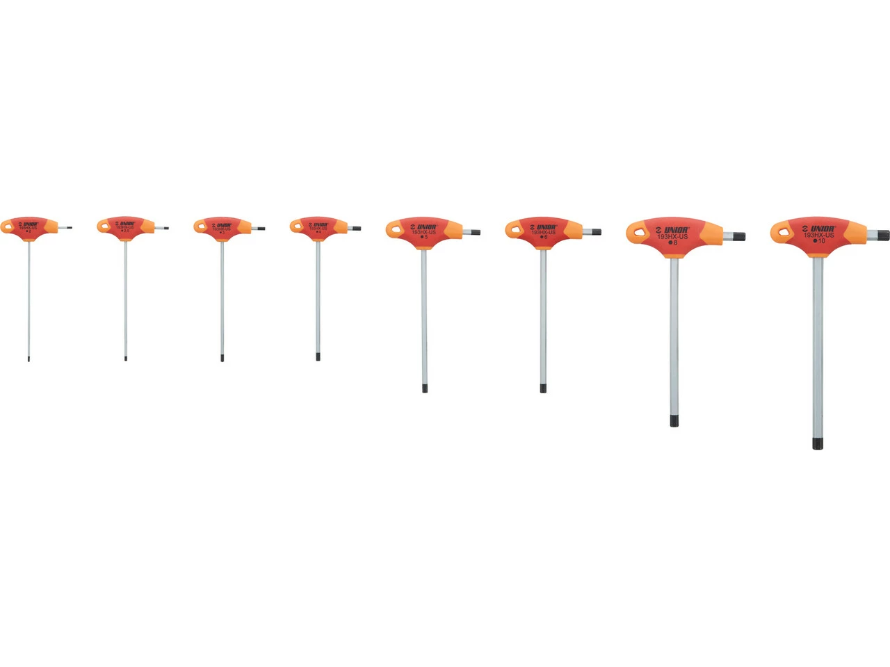 Lieferumfang:1 x Innensechskant-Schlüsselset Unior Bike Tools 193HX T-Griff, 8-teilig