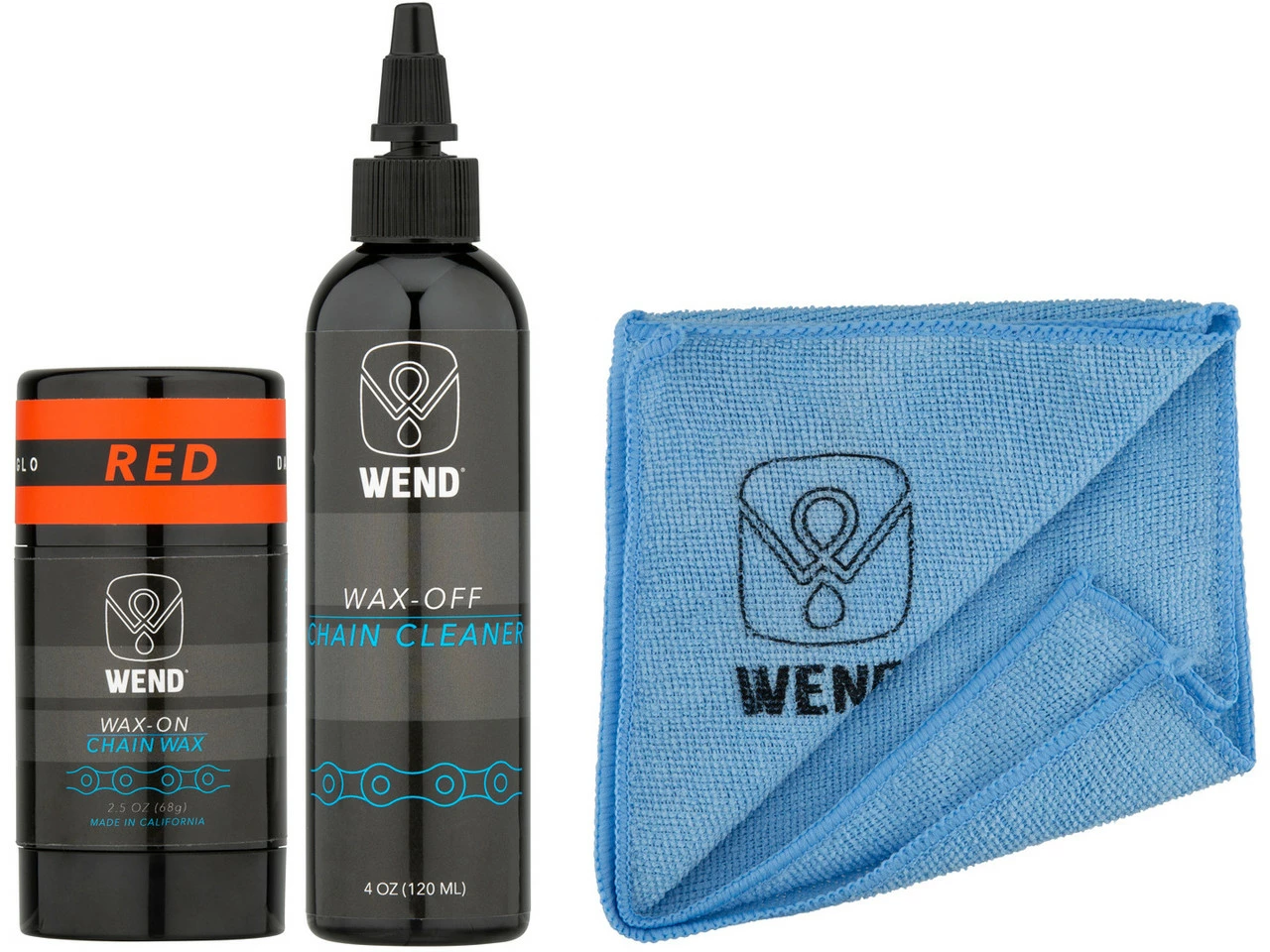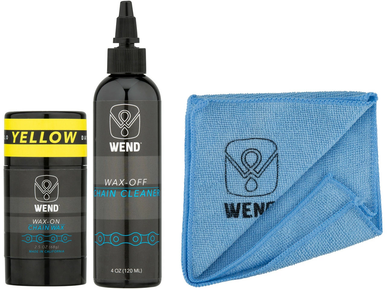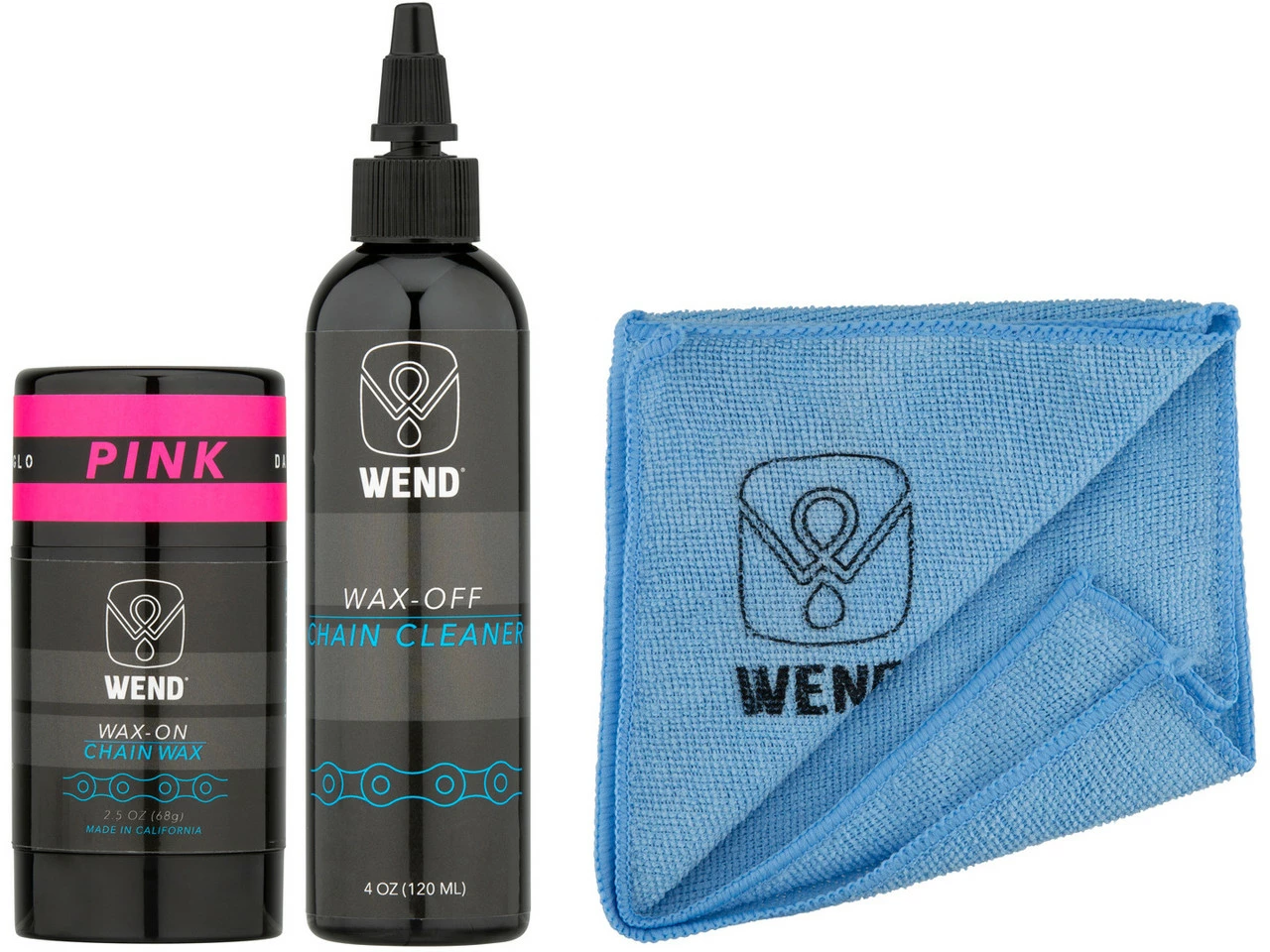 Wax-OFF KettenreinigerWax-ON KettenwachsHerstellernummern:blue:WWWOWOBLgreen:WWWOWOGorange:WWWOWOOpink:WWWOWOPred:WWWOWORyellow:WWWOWOYpurple:WWWOWOPLLieferumfang:1 x 120 ml Kettenreiniger WEND Wax Wax-OFF1 x 80 ml farbiges Kettenwachs WEND Wax Wax-ON Spectrum Colors1 x Mikrofaser Tuch