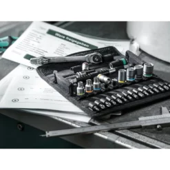 Wera hat ein komplett neues Satzgefühl erfunden. Bislang werden Knarren samt Zubehör in der Regel in stabilen, aber klobigen und teilweise schweren Metallkästen verpackt. Die kompakte textile Box führt zu einer ungeahnten Erleichterung in der Mobilität und beim Platzbedarf. Die gleiche Werkzeugmenge, die bislang mit mindestens einer Hand am Griff gehalten werden musste, kommt nun in eine kompakte Box, die ihrerseits Bestandteil eines Werkzeugkoffers werden kann, in dem viele weitere Werkzeuge transportiert werden können. Das mehrmalige Hin- und Herlaufen, um Werkzeuge von A nach B zu tragen, entfällt ab sofort. Und das deutlich reduzierte Gewicht eines Satzes macht das Tragen viel angenehmer als je zuvor. Empfindliche Oberflächen werden bei der Ablage geschont. Unglaublich robust ist die Box auch noch. Sogar das Runterfallen übersteht die textile Box samt Werkzeug unbeschadet.