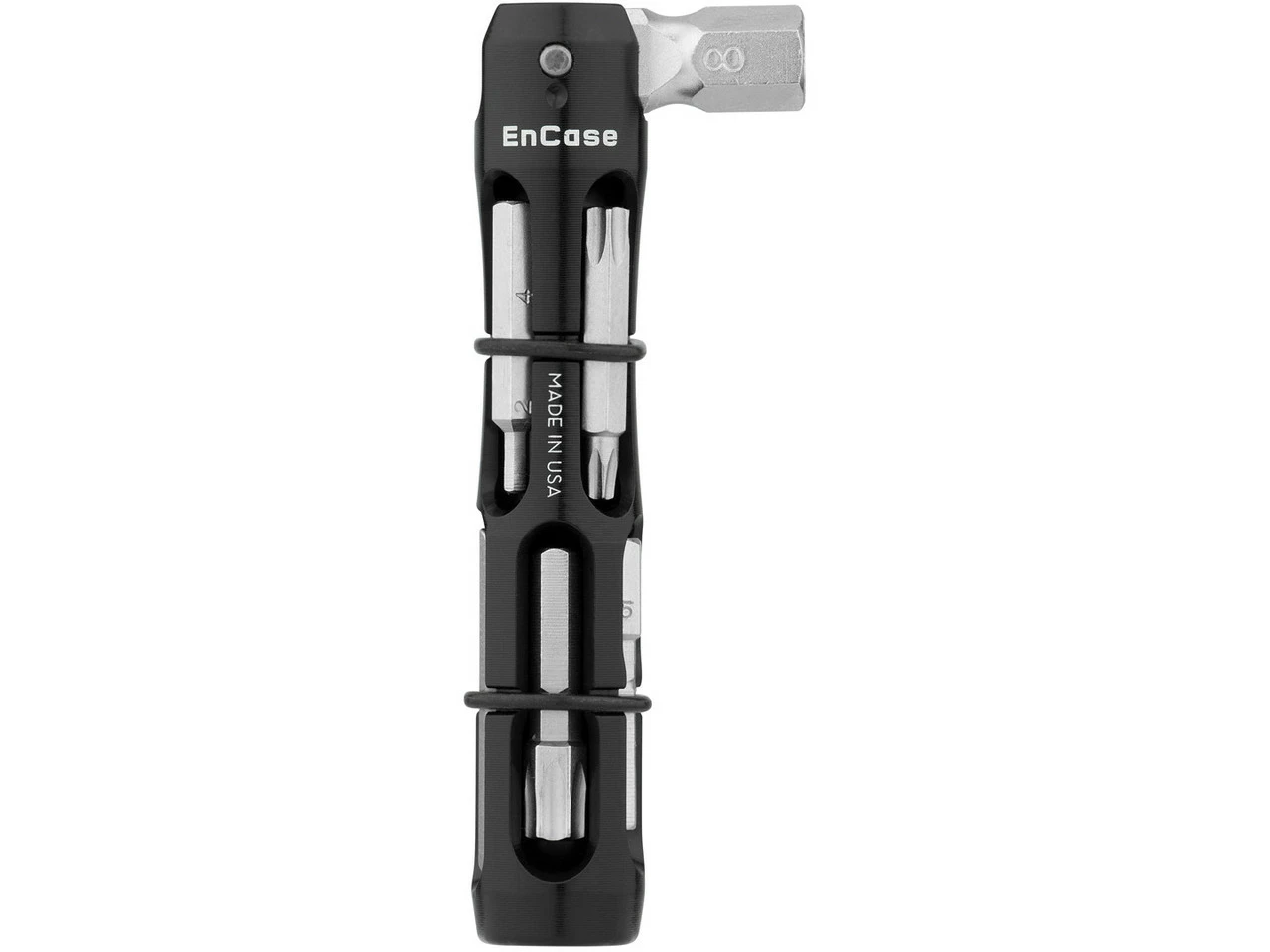 Spezifikationen:Funktion:MultitoolWerkzeugtyp:SonderwerkzeugAusführung:Innensechskant, Torx, Schlitz, KreuzTechnische Daten:Material:Aluminium (7075-T6), Stahl (CrV)Funktionen:2 mm Innensechskant2,5 mm Innensechskant3 mm Innensechskant4 mm Innensechskant5 mm Innensechskant6 mm Innensechskant8 mm InnensechskantTorx T10Torx T25Torx T30Schraubendreher flach #3.5Schraubendreher Kreuz Phillips #2SpeichenschlüsselVentilwerkzeugFeatures:14 Funktionen8 mm Sechskant-Kopf mit 4 mm Aufnahme für die 8 separaten Bitsfür die Heimwerkstatt oder für unterwegskann im Lenker verstaut werden per EnCase System Storage SleeveMagnete und O-Ringe halten Teile an Ort und Stelleschwenkbarer Kopf hilft bei schwer zugänglichen Stellen, gibt Extra-HebelkraftWerkzeug unten magnetisch, um an Montageständer zu haftenMade in the USA